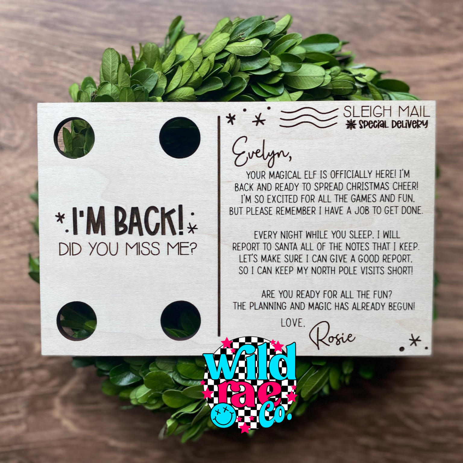 Add a magical touch to your elf's arrive with these personalized elf postcards. Each postcard measures 4.5 x 7". I can fit up to 4 engraved names at the top of the card.